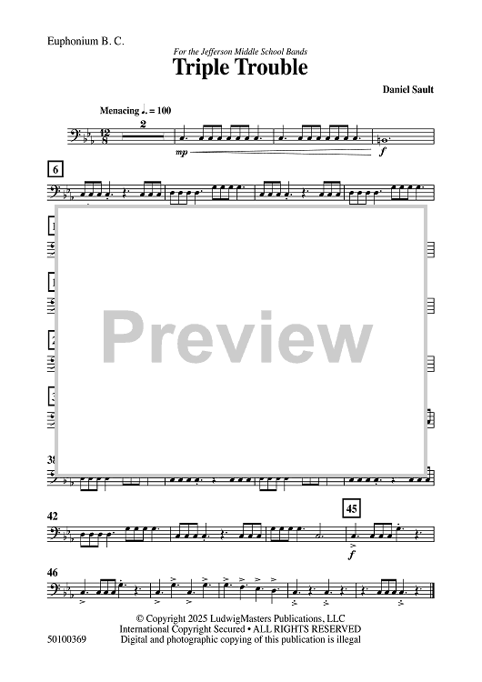 Digital Sheet Music for Triple Trouble - Euphonium BC by Daniel Sault scored for Concert Band; id:509410