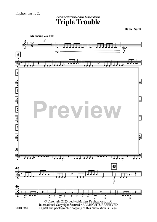 Digital Sheet Music for Triple Trouble - Euphonium TC by Daniel Sault scored for Concert Band; id:509409