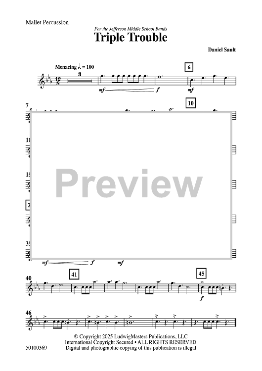 Digital Sheet Music for Triple Trouble - Mallet Percussion by Daniel Sault scored for Concert Band; id:509412