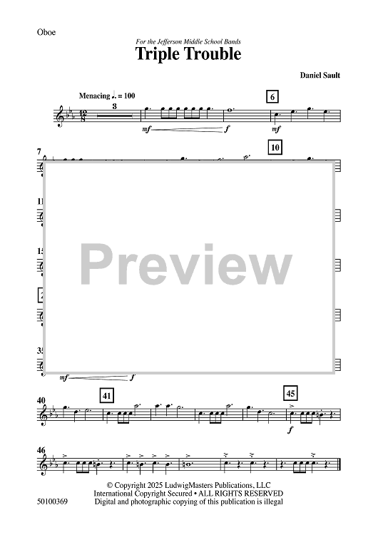 Digital Sheet Music for Triple Trouble - Oboe by Daniel Sault scored for Concert Band; id:509399