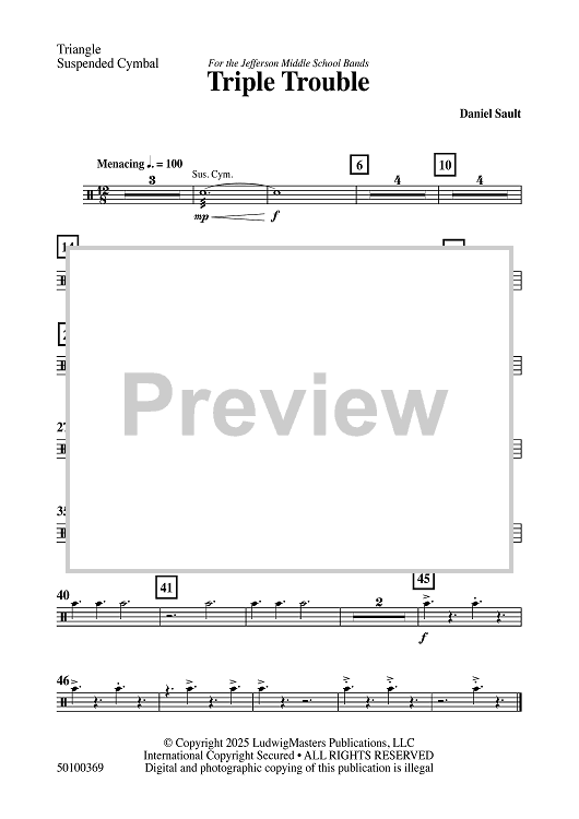 Digital Sheet Music for Triple Trouble - Triangle / Suspended Cymbal by Daniel Sault scored for Concert Band; id:509414