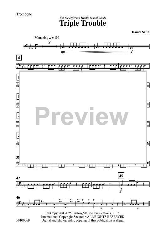 Digital Sheet Music for Triple Trouble - Trombone by Daniel Sault scored for Concert Band; id:509408