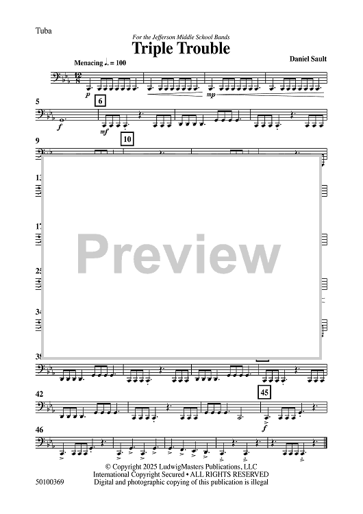 Digital Sheet Music for Triple Trouble - Tuba by Daniel Sault scored for Concert Band; id:509411