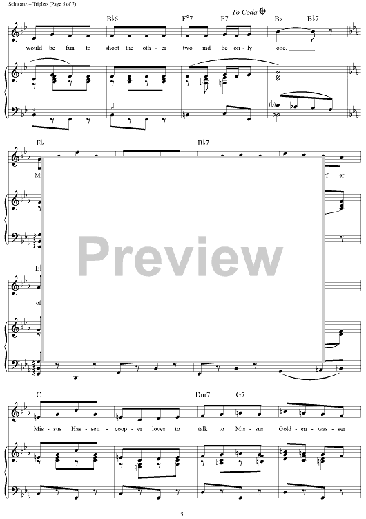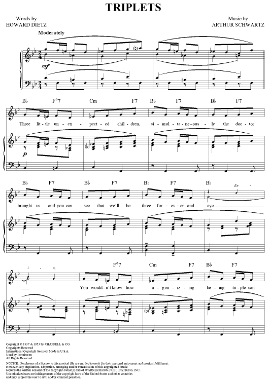 Digital Sheet Music for Triplets by Howard Dietz, Arthur Schwartz scored for Piano/Vocal/Chords; id:314726