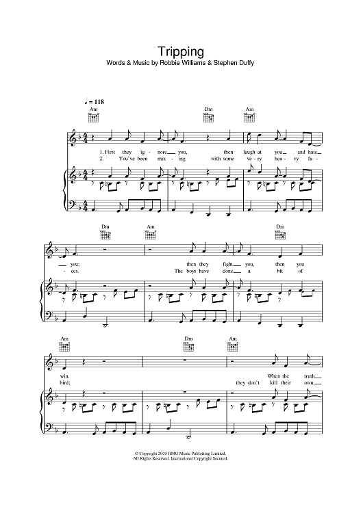 Digital Sheet Music for Tripping by Robbie Williams, Stephen Duffy scored for Piano/Vocal/Chords; id:387197