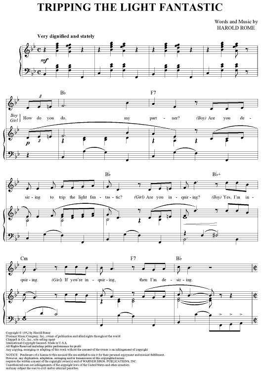 Digital Sheet Music for Tripping the Light Fantastic by Harold Rome scored for Piano/Vocal/Chords; id:315553