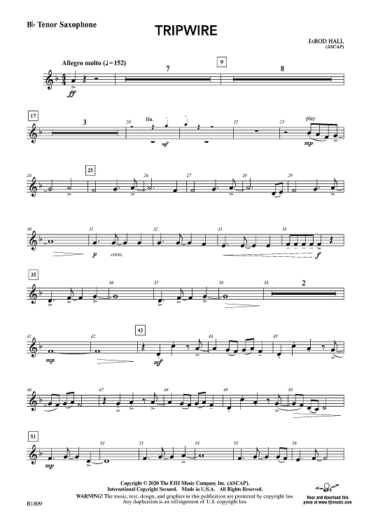 Digital Sheet Music for Tripwire - Bb Tenor Sax by JaRod Hall scored for Concert Band; id:501541