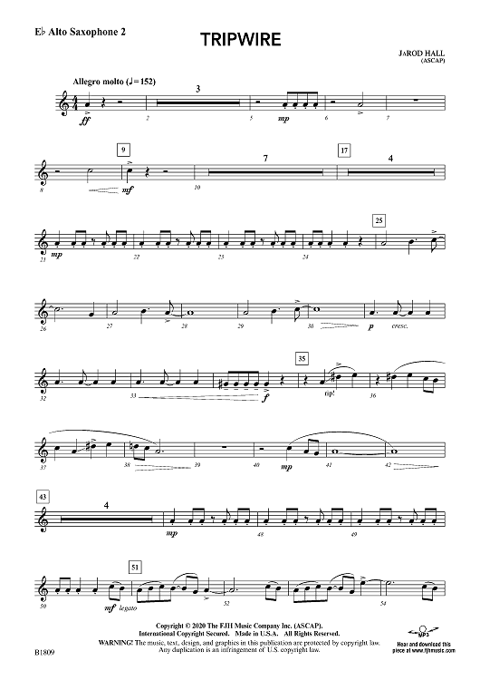 Digital Sheet Music for Tripwire - Eb Alto Sax 2 by JaRod Hall scored for Concert Band; id:501540