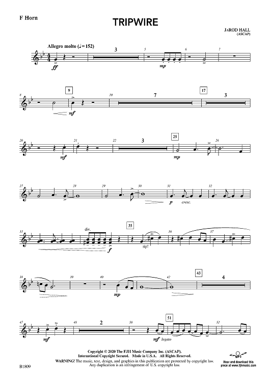 Digital Sheet Music for Tripwire - F Horn by JaRod Hall scored for Concert Band; id:501545