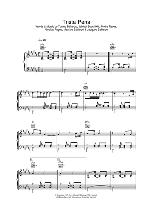 Digital Sheet Music for Trista Pena by Jacques Baliardo, Maurice Baliardo, Tonino Baliardo, Jahloul Bouchikhi, Gipsy Kings, Andre Reyes, Nicolas Reyes scored for Piano/Vocal/Chords; id:395869