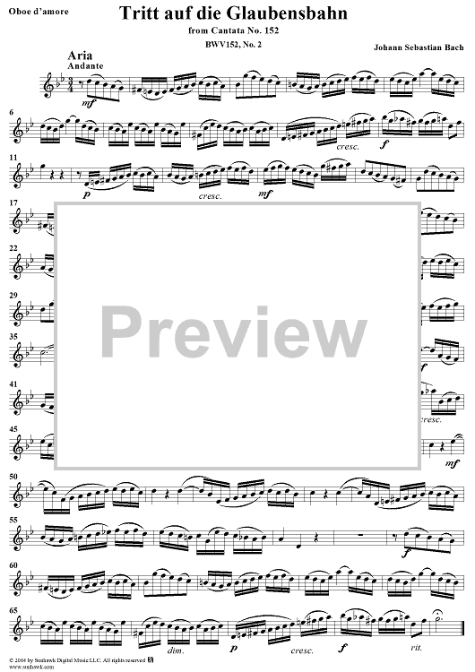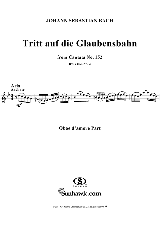 ""Tritt auf die Glaubensbahn", Aria, No. 2 from Cantata No. 152: "Tritt auf die Glaubensbahn" - Oboe d'amore" Sheet Music by Johann Sebastian Bach