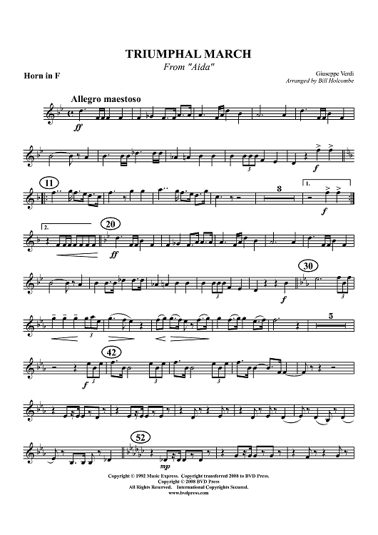 Digital Sheet Music for Triumphal March from "Aida" - Horn by Giuseppe Verdi, Bill Holcombe scored for Brass Quintet; id:405074