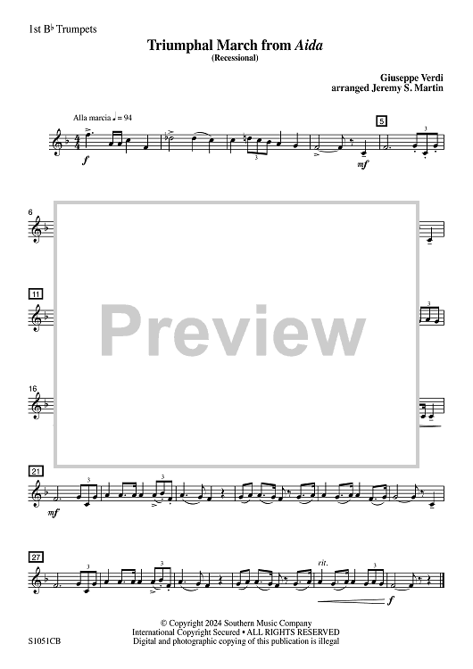 Digital Sheet Music for Triumphal March from Aida (Recessional) - 1st Bb Trumpets by Giuseppe Verdi, Jeremy S. Martin scored for Concert Band; id:506571