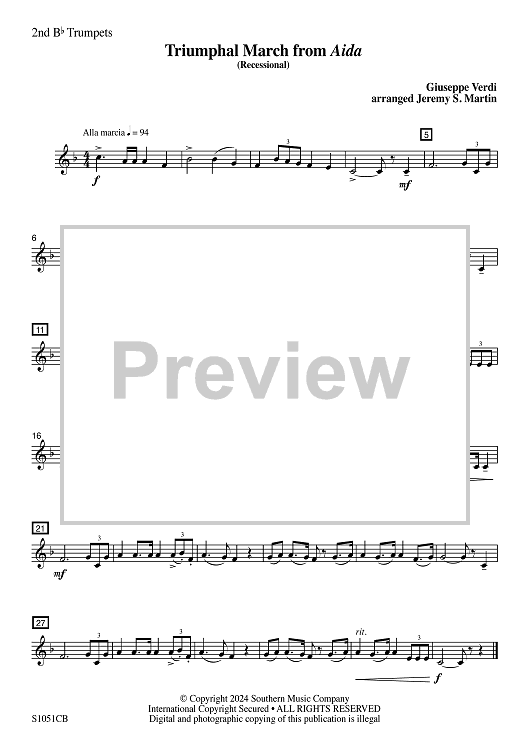 Digital Sheet Music for Triumphal March from Aida (Recessional) - 2nd Bb Trumpets by Giuseppe Verdi, Jeremy S. Martin scored for Concert Band; id:506572