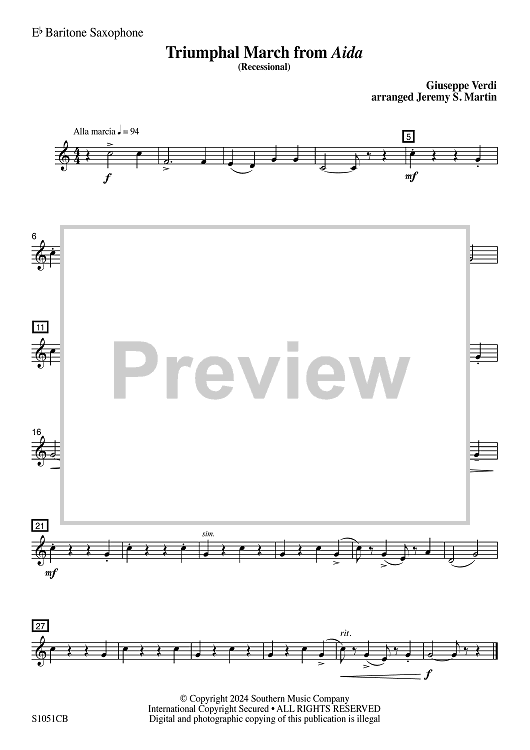 Digital Sheet Music for Triumphal March from Aida (Recessional) - Eb Baritone Saxophone by Giuseppe Verdi, Jeremy S. Martin scored for Concert Band; id:506570