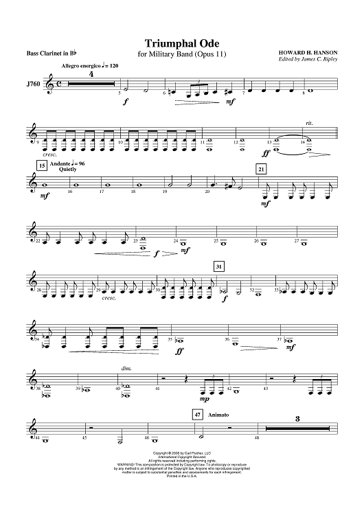 "Triumphal Ode - Bass Clarinet in B-flat" Sheet Music by Howard Hanson