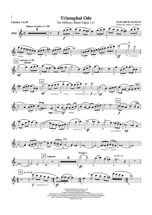 "Triumphal Ode - Clarinet 1 in B-flat" Sheet Music by Howard Hanson