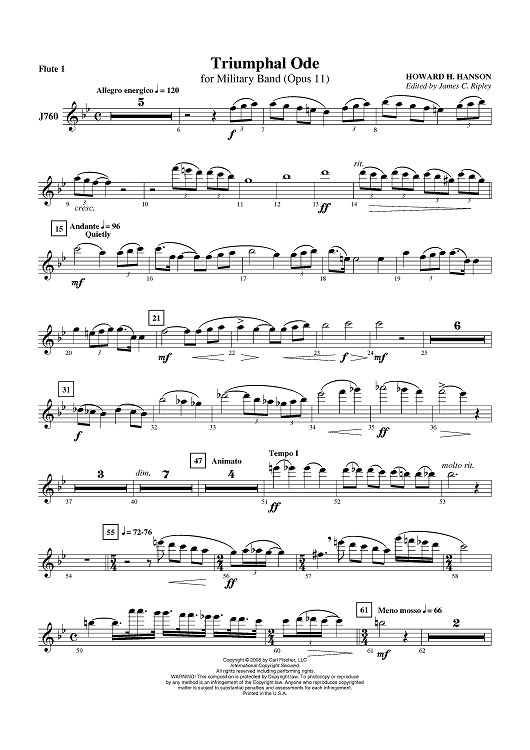 "Triumphal Ode - Flute 1" Sheet Music by Howard Hanson