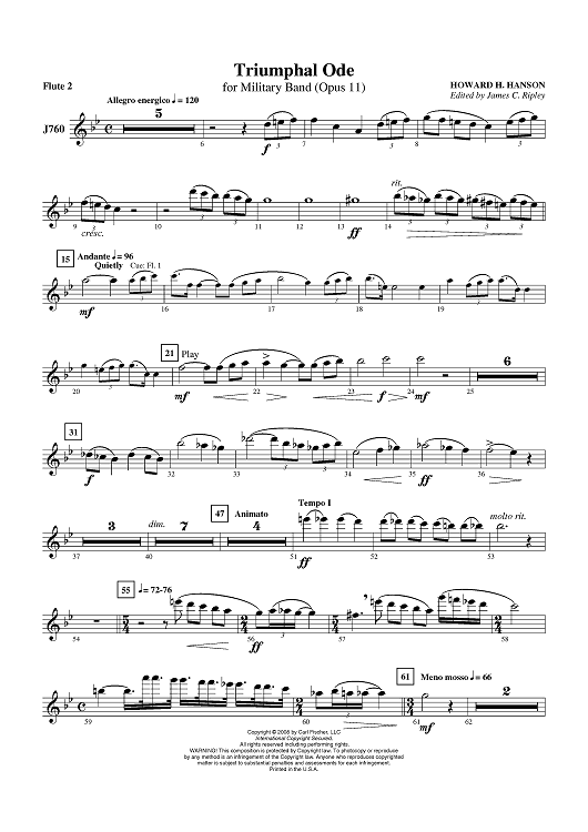 "Triumphal Ode - Flute 2" Sheet Music by Howard Hanson