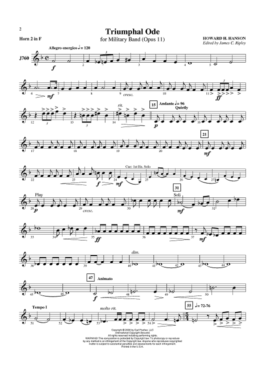 Digital Sheet Music for Triumphal Ode - Horn in F 2 by Howard Hanson scored for Concert Band; id:409284