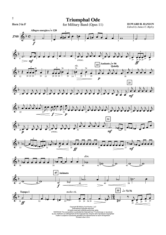 "Triumphal Ode - Horn in F 3" Sheet Music by Howard Hanson