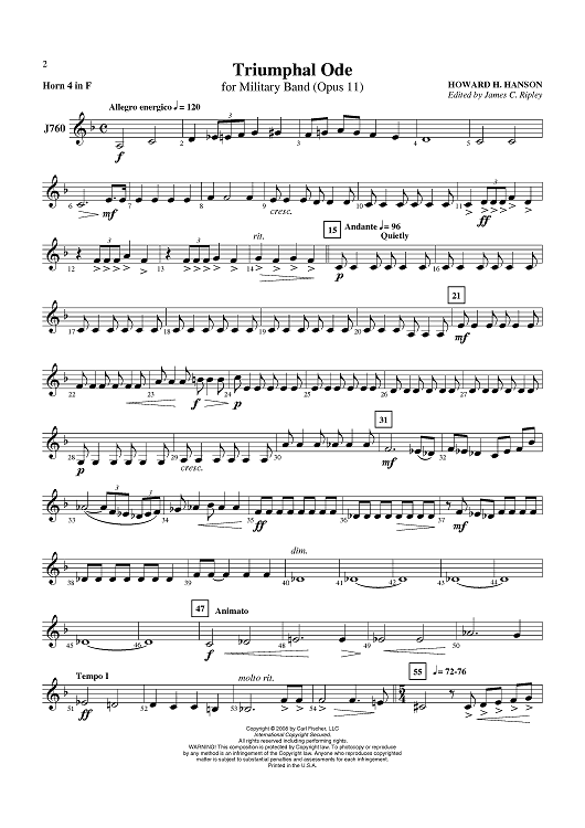 "Triumphal Ode - Horn in F 4" Sheet Music by Howard Hanson