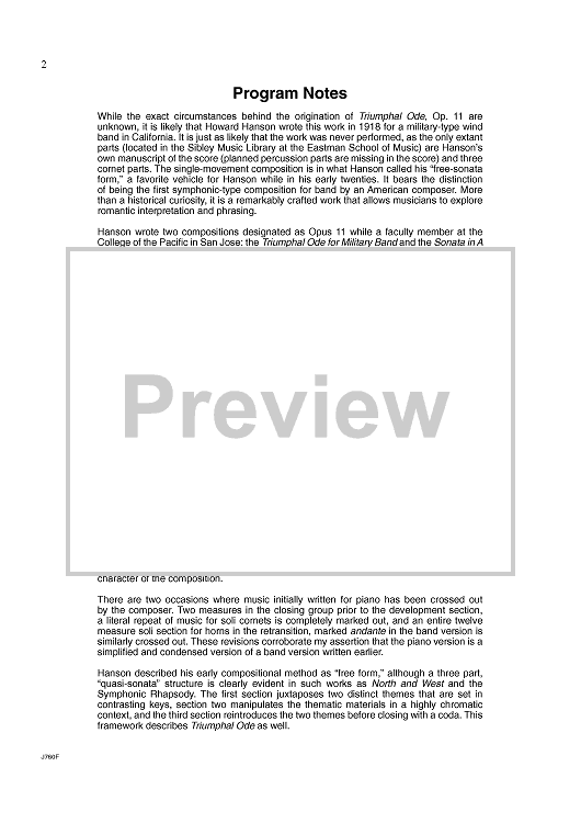 Digital Sheet Music for Triumphal Ode - Score by Howard Hanson scored for Concert Band; id:409265