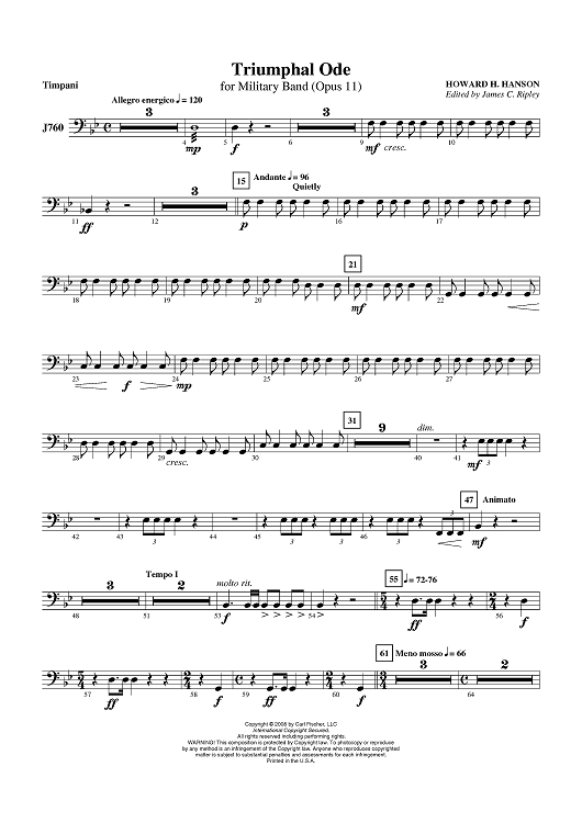 "Triumphal Ode - Timpani" Sheet Music by Howard Hanson