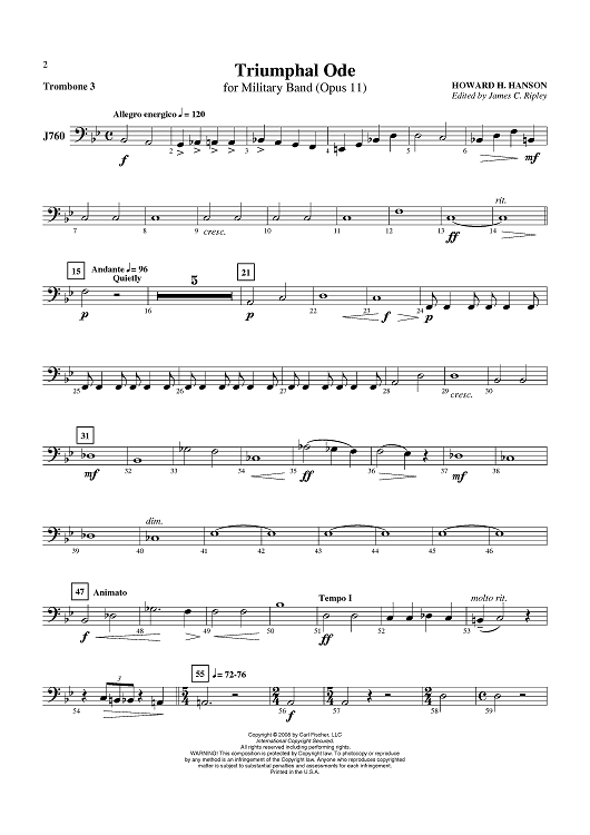"Triumphal Ode - Trombone 3" Sheet Music by Howard Hanson