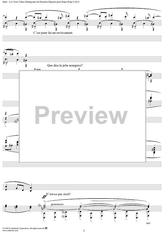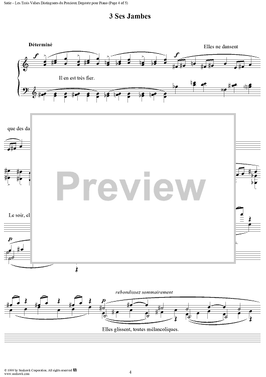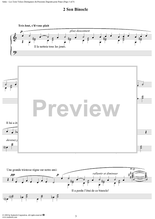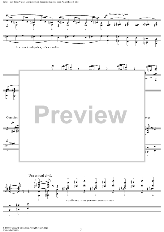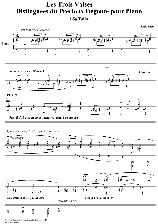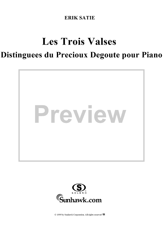 "trois Valses Distinguees du Precioux Degoute pour Piano" Sheet Music by Erik Satie