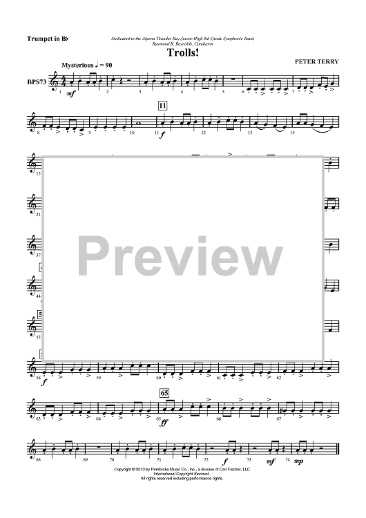 Digital Sheet Music for Trolls! - Trumpet in Bb by Peter Terry scored for Concert Band; id:435337