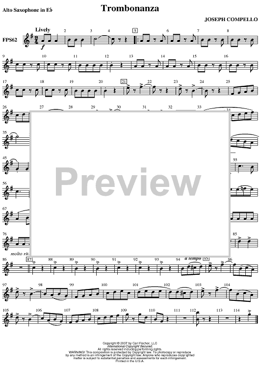 "Trombonanza - Alto Sax" Sheet Music by Joseph Compello
