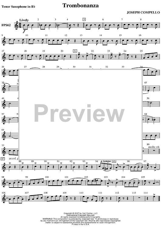 "Trombonanza - Tenor Sax" Sheet Music by Joseph Compello