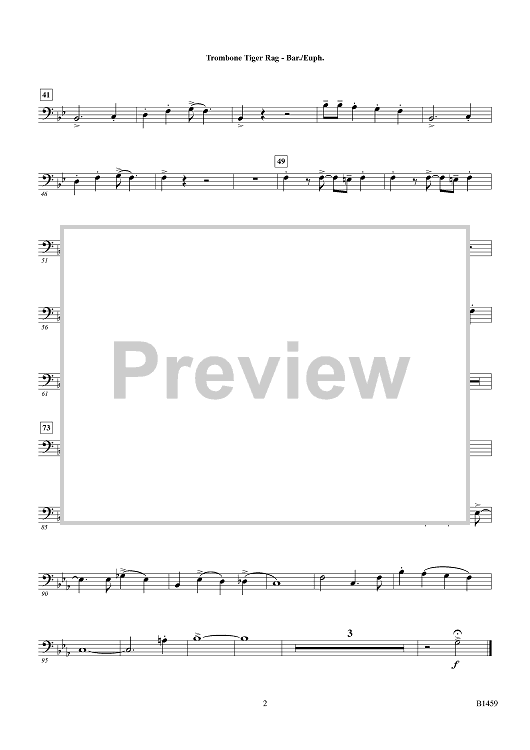 "Trombone Tiger Rag - Baritone/Euphonium" Sheet Music by Original Dixieland Jazz Band