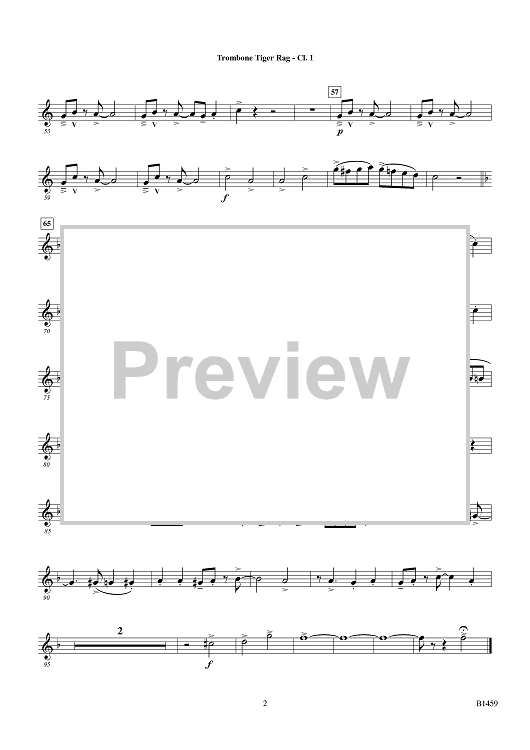 Digital Sheet Music for Trombone Tiger Rag - Bb Clarinet 1 by Original Dixieland Jazz Band, Nick LaRocca scored for Concert Band; id:425340