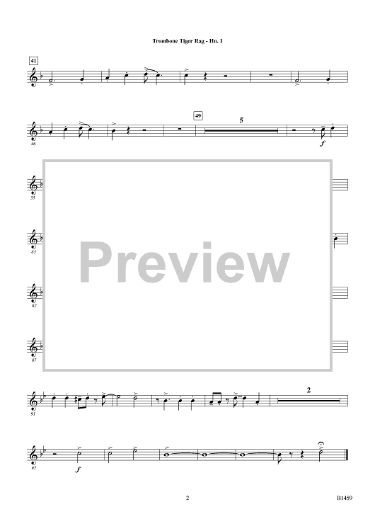 Digital Sheet Music for Trombone Tiger Rag - F Horn 1 by Original Dixieland Jazz Band, Nick LaRocca scored for Concert Band; id:425351