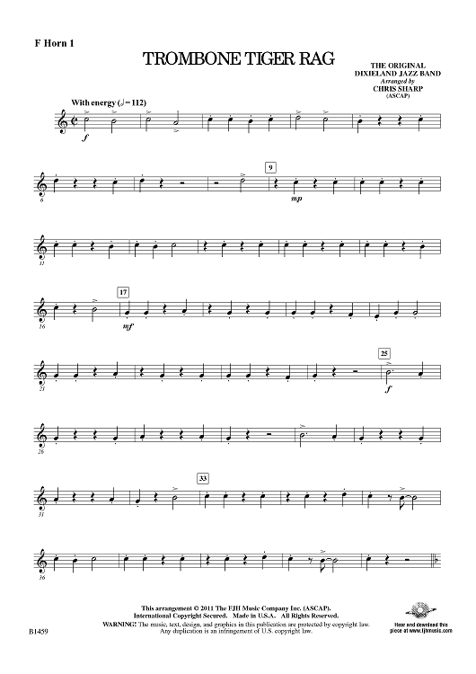 "Trombone Tiger Rag - F Horn 1" Sheet Music by Original Dixieland Jazz Band