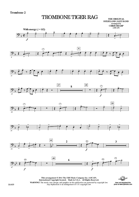 "Trombone Tiger Rag - Trombone 2" Sheet Music by Original Dixieland Jazz Band