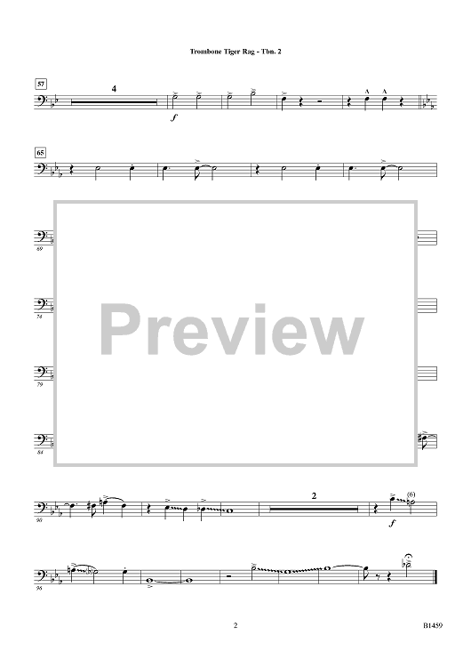 Digital Sheet Music for Trombone Tiger Rag - Trombone 2 by Original Dixieland Jazz Band, Nick LaRocca scored for Concert Band; id:425354