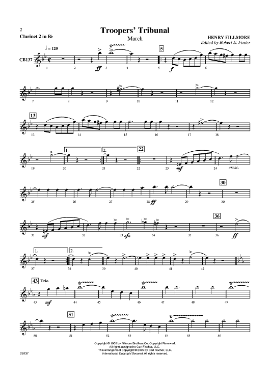 "Troopers' Tribunal - Clarinet 2 in B-flat" Sheet Music by Henry Fillmore