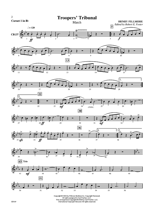 "Troopers' Tribunal - Cornet 1 in B-flat" Sheet Music by Henry Fillmore