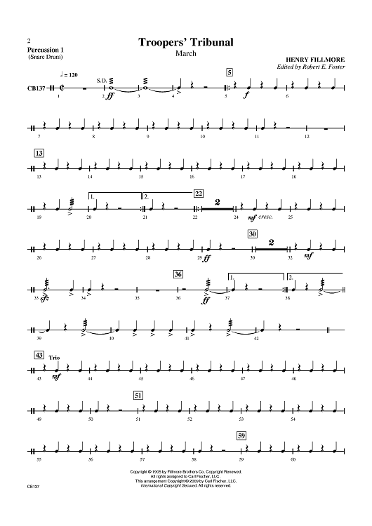 Digital Sheet Music for Troopers' Tribunal - Percussion 1 by Henry Fillmore scored for Concert Band; id:405517