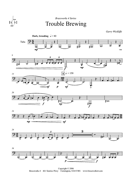 "Trouble Brewing - Tuba" Sheet Music by Garry Wickliffe