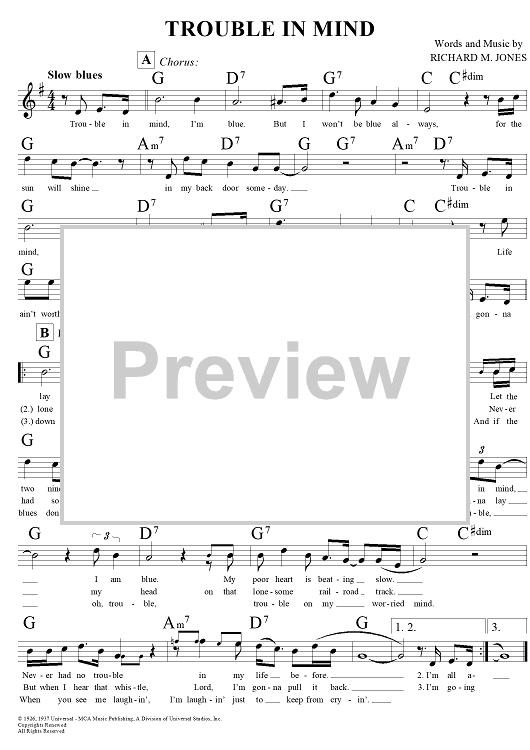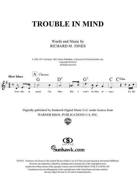 Digital Sheet Music for Trouble in Mind by Richard M. Jones scored for Lead Sheet; id:291773