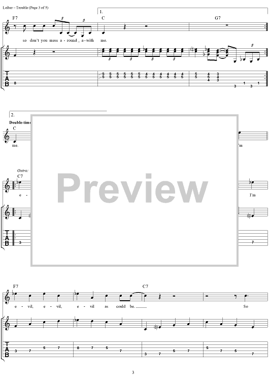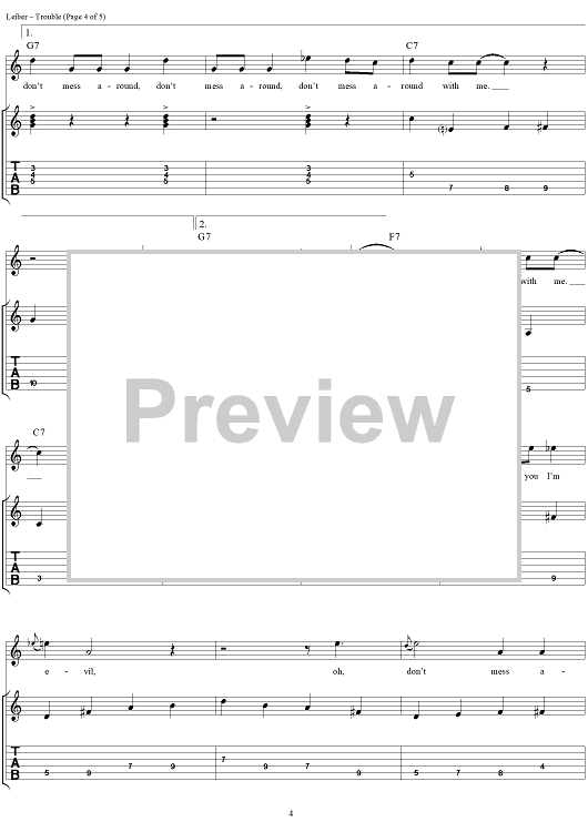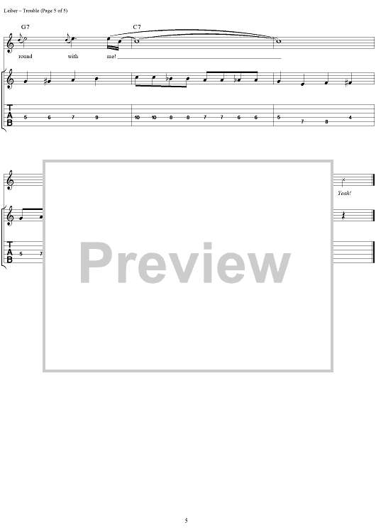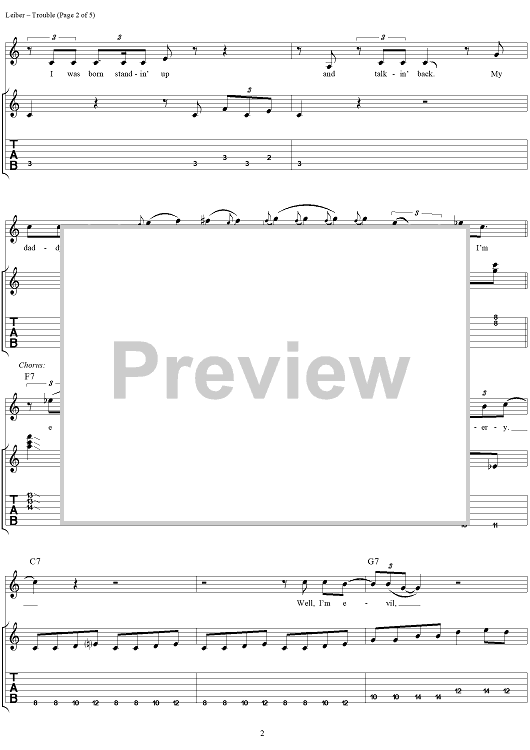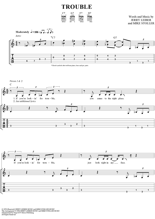 Digital Sheet Music for Trouble by Elvis Presley, Jerry Leiber, Mike Stoller, Kenn Chipkin scored for Guitar Tab/Vocal; id:250598