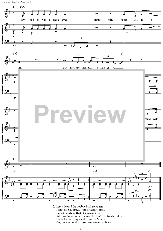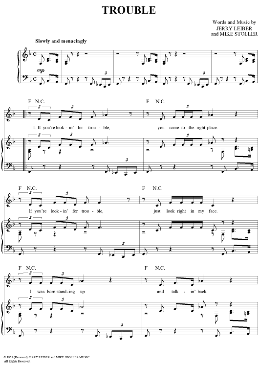 Digital Sheet Music for Trouble by Elvis Presley, Jerry Leiber, Mike Stoller scored for Piano/Vocal/Chords; id:362965