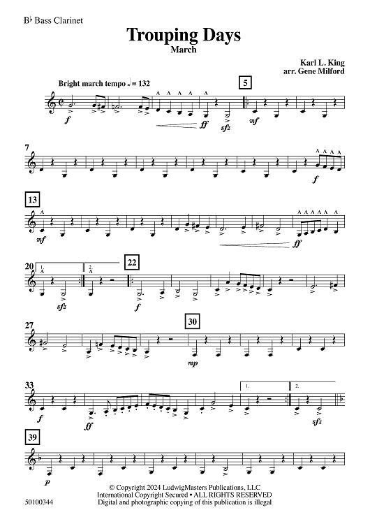 Digital Sheet Music for Trouping Days - Bb Bass Clarinet by Gene Milford, Karl King scored for Concert Band; id:504577