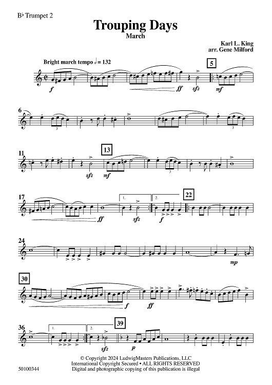 Digital Sheet Music for Trouping Days - Bb Trumpet 2 by Gene Milford, Karl King scored for Concert Band; id:504583