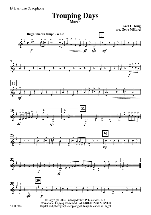 Digital Sheet Music for Trouping Days - Eb Baritone Sax by Gene Milford, Karl King scored for Concert Band; id:504581