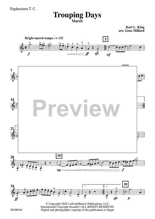 Digital Sheet Music for Trouping Days - Euphoniums TC/BC by Gene Milford, Karl King scored for Concert Band; id:504592